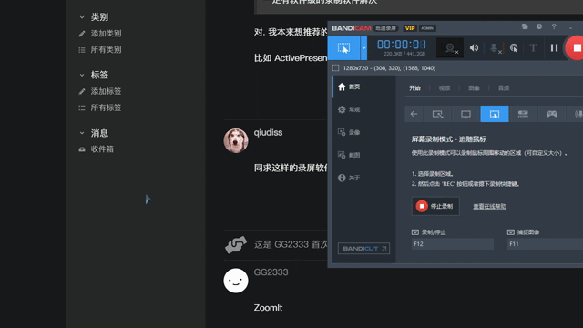 不过,结合上面几个可以放大鼠标的工具,用 Bandicam 录制不就成了 ![]()