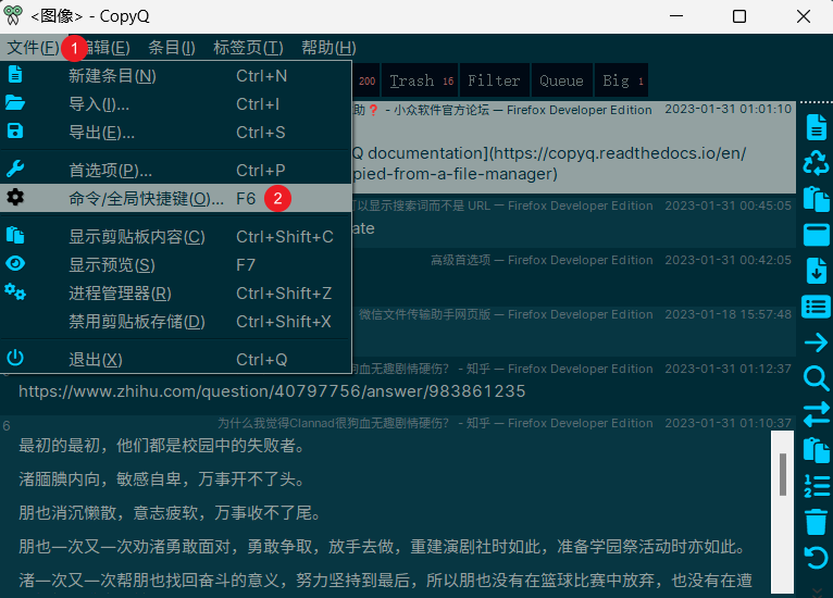 最近尝试下了 copyq 感觉挺好用,想实现几个功能