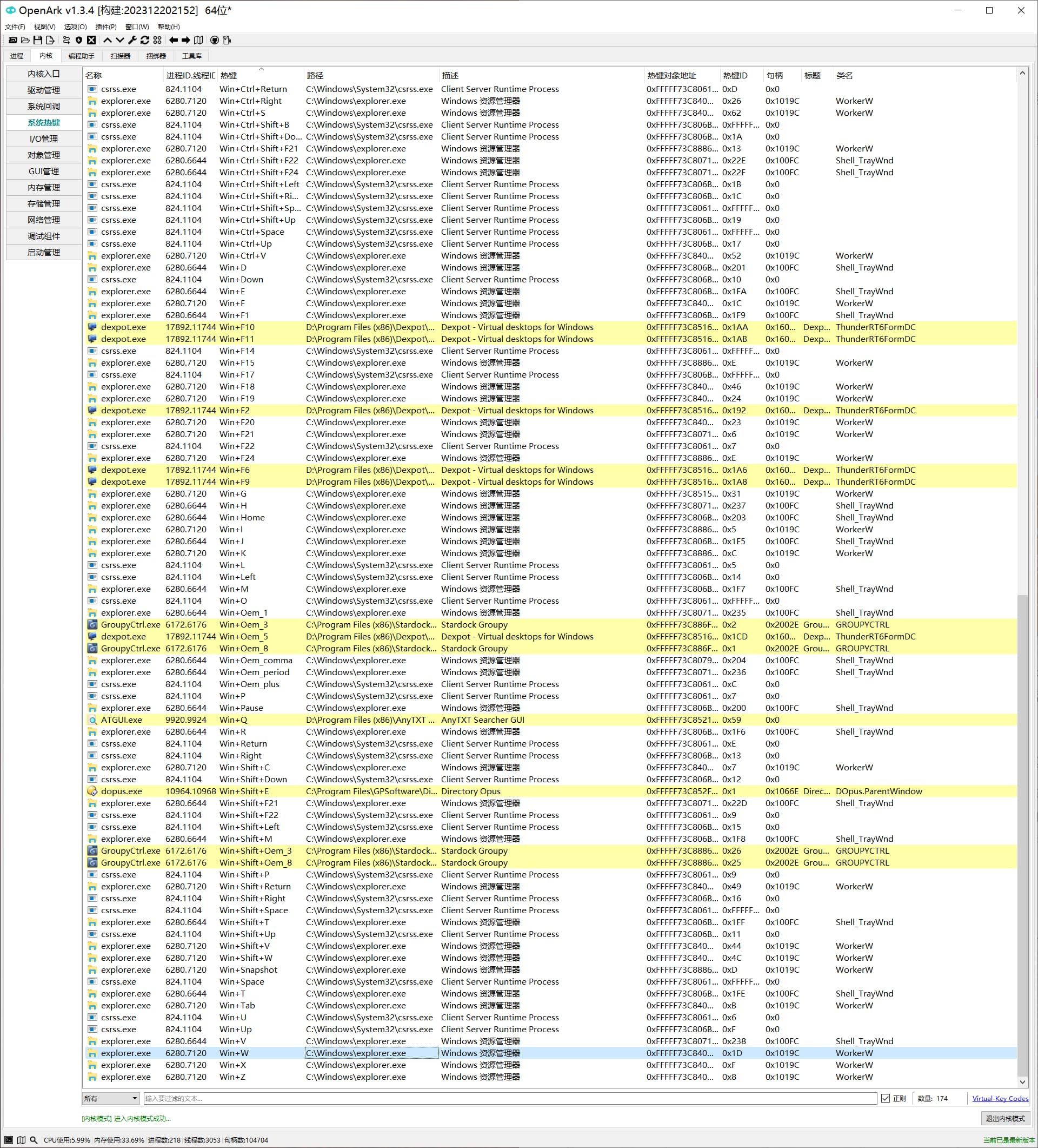 比如我要给某软件设置Ctrl-0的快捷键,结果发现设置后就是没响应,可能是其他软件占用了,但又不知道是哪个,有没有比较直观、快捷的方法找到被占用的情况?