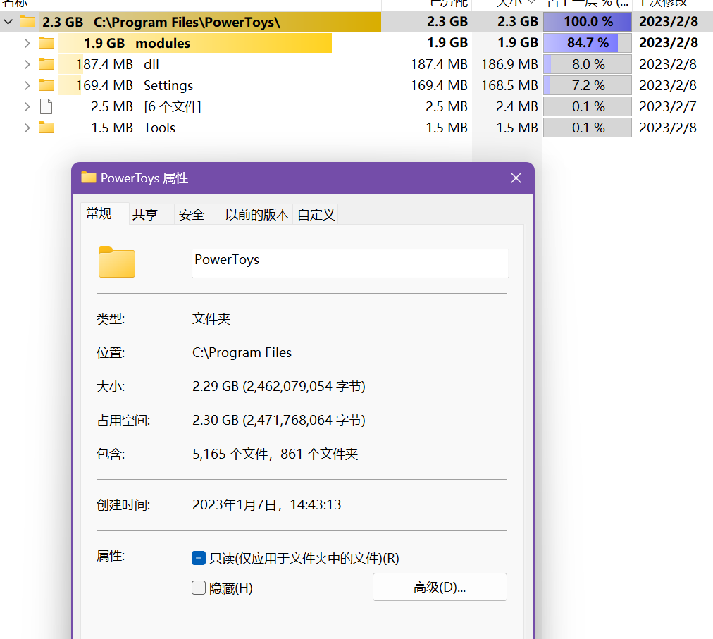 摸鱼期间的一项常规活动就是检查电脑空间占用~今天没有注重C盘而是看向了以前从没注意的 scoop/apps 文件夹,排名第一属实吓我一跳!PowerToys 下的各个 小工具 平均都达到了 200MB ,最后加起来达到了 2.5G……真的是大受震撼。微信连程序目录加上 AppData/Roaming 里的插件也就2G不到吧。