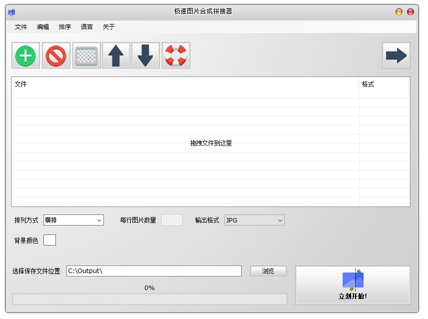 通过程序的设置选项,你可以调整图片合并顺序、合并方式、自定义每行合并多少张图片、输出格式甚至空白处背景颜色。用户界面和设置栏清晰直观,让你可以轻松地添加图像文件并排序,然后将它们合并为一张大图。 程序可以一键垂直或水平合并所有图片哦!