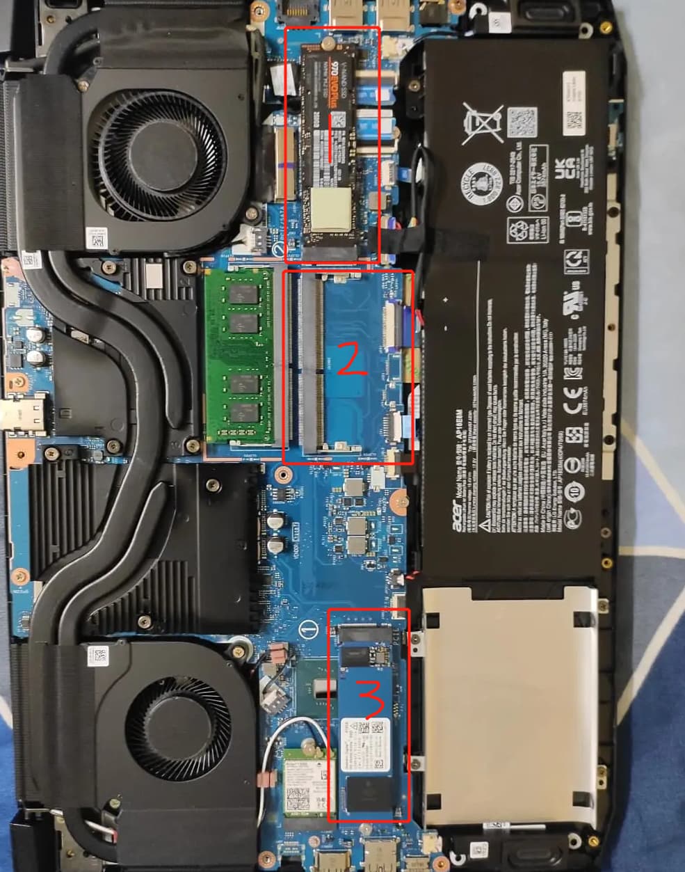3 处的空位可以装一条固态,看他接口里面的缺口是在左边还是右边