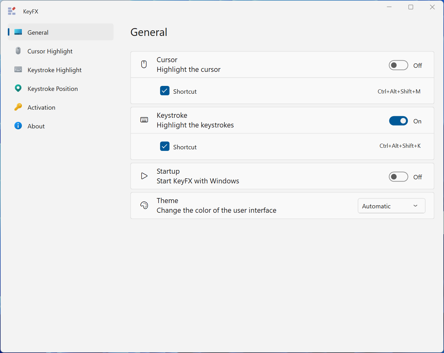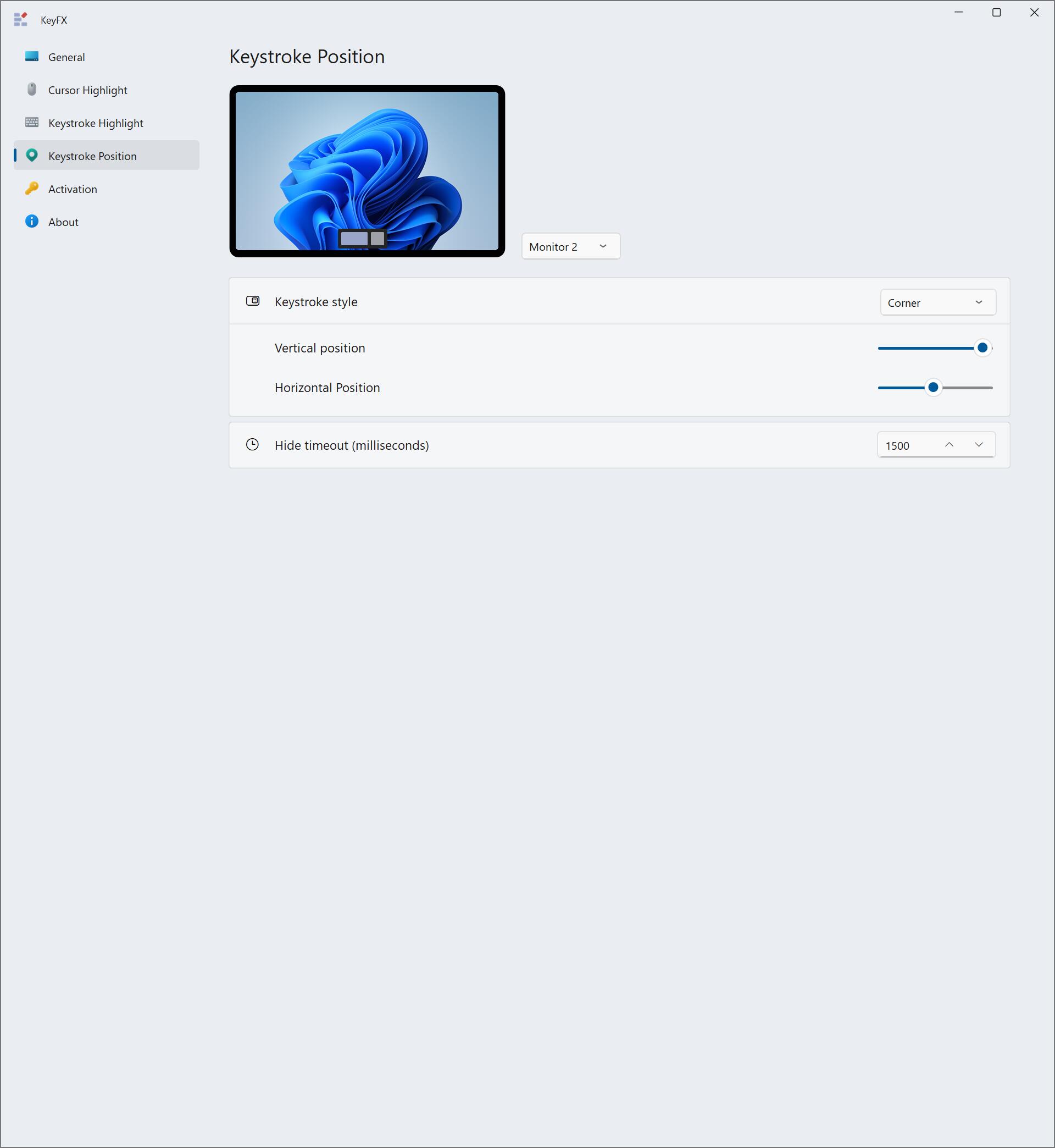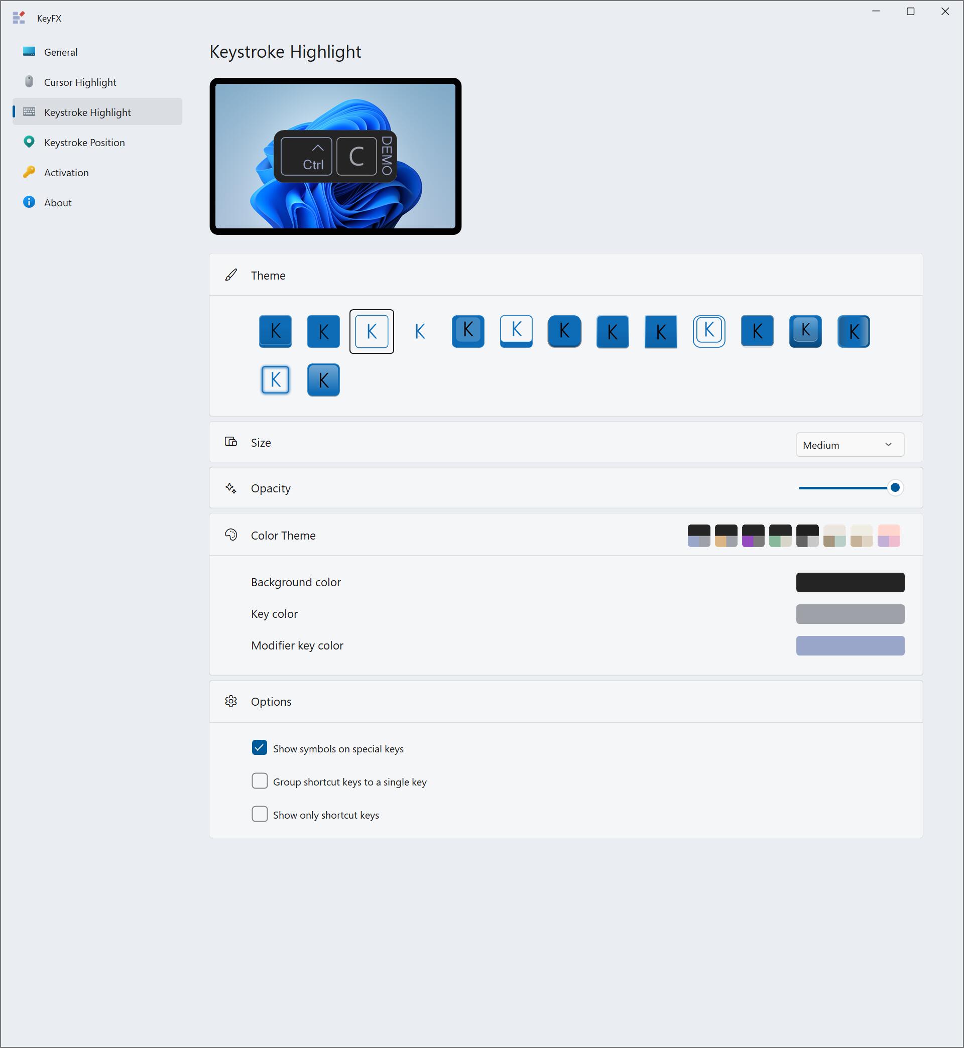 之前小众发的 Keyviz 是挺好看的,但只能显示在主显示器上,不太方便,于是找到了这个。软件没有中文。