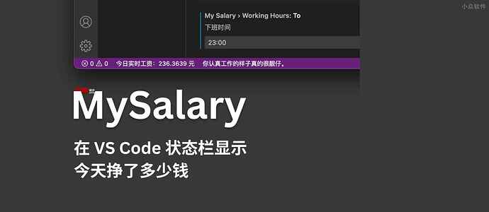 MySalary 是一个仅供娱乐的 VS Code 插件,它能在状态栏实时显示今天挣了多少钱。@Appinn