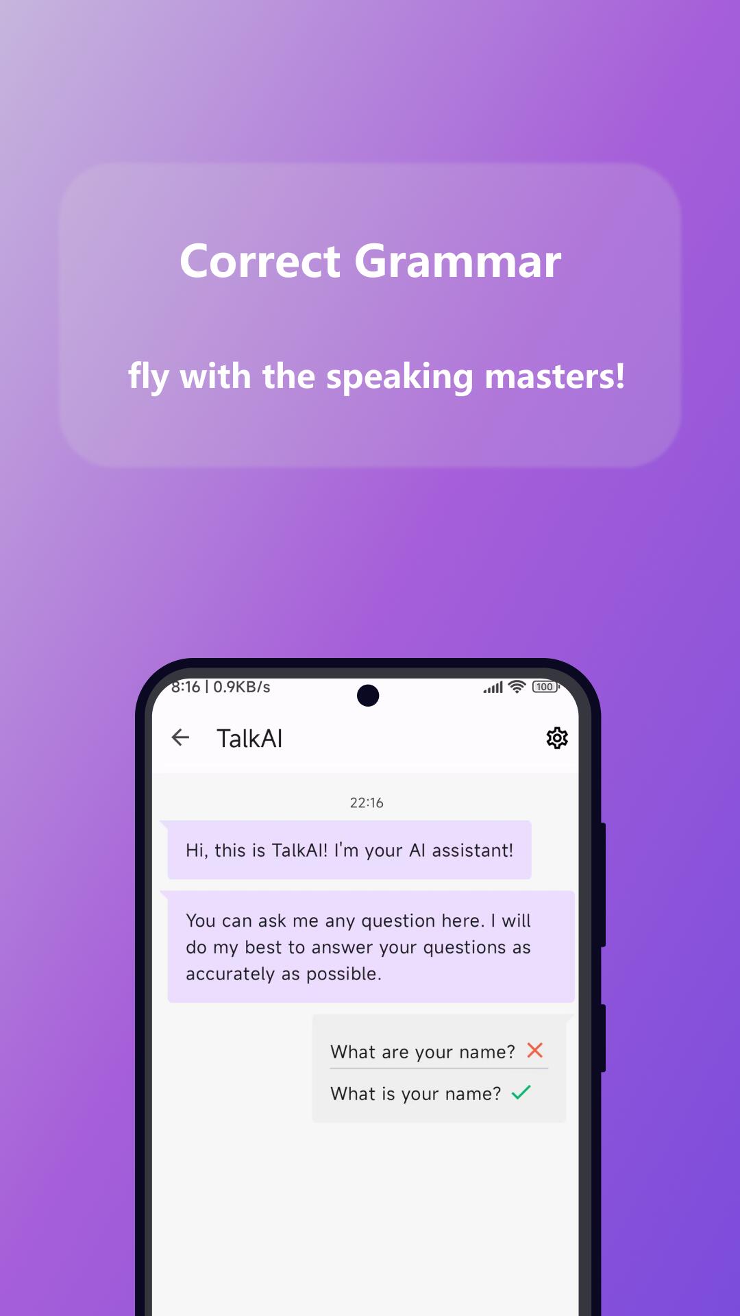 2、支持一键语法纠错。TalkAI 可以检测并纠正你的语法错误,帮助你提高语言表达能力。