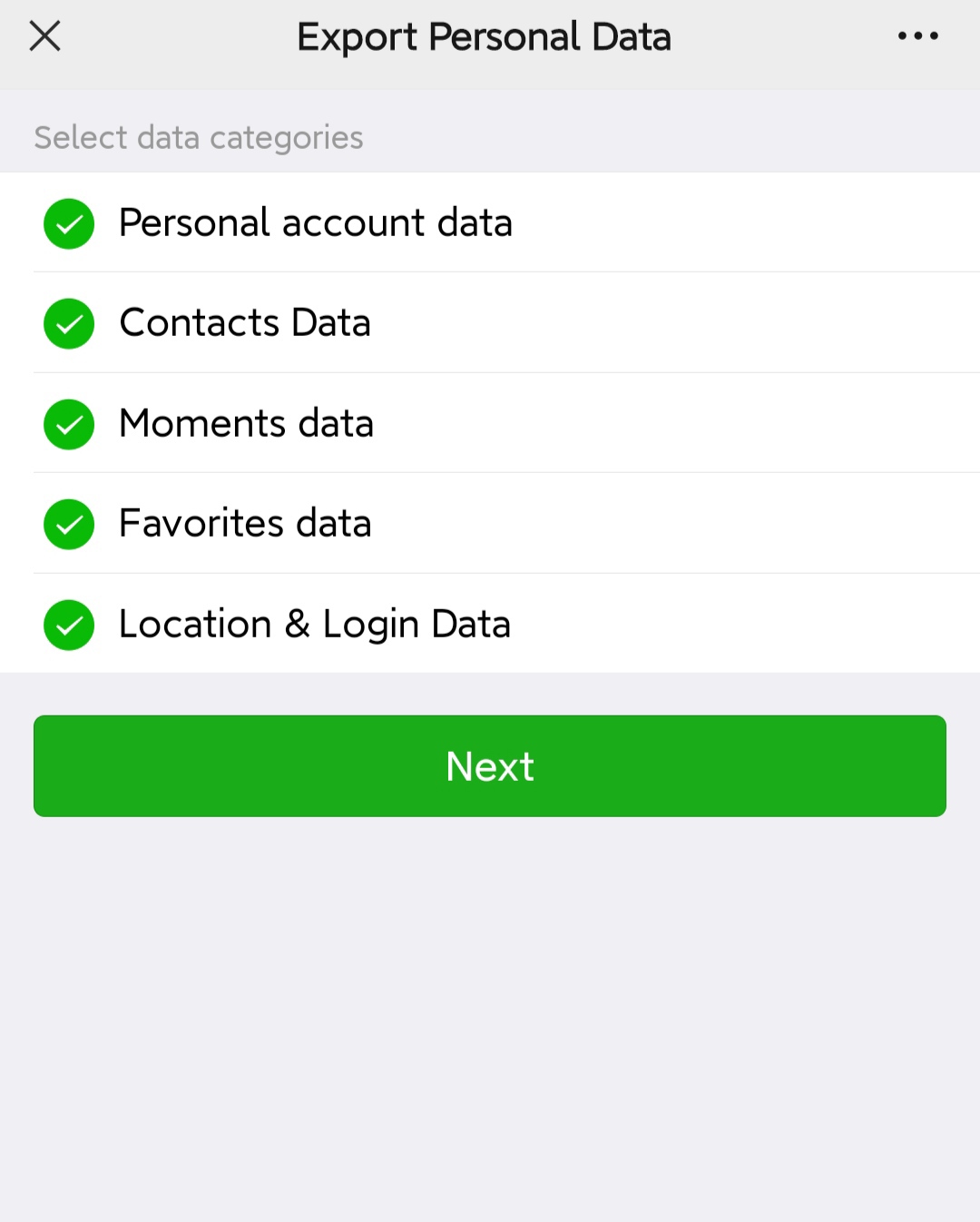 WeChat导出页面: https://support.wechat.com/security/readtemplate?t=exportdata/index