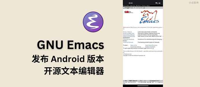 原始链接在: GNU Emacs Android 版本发布,开源文本编辑器 - 小众软件