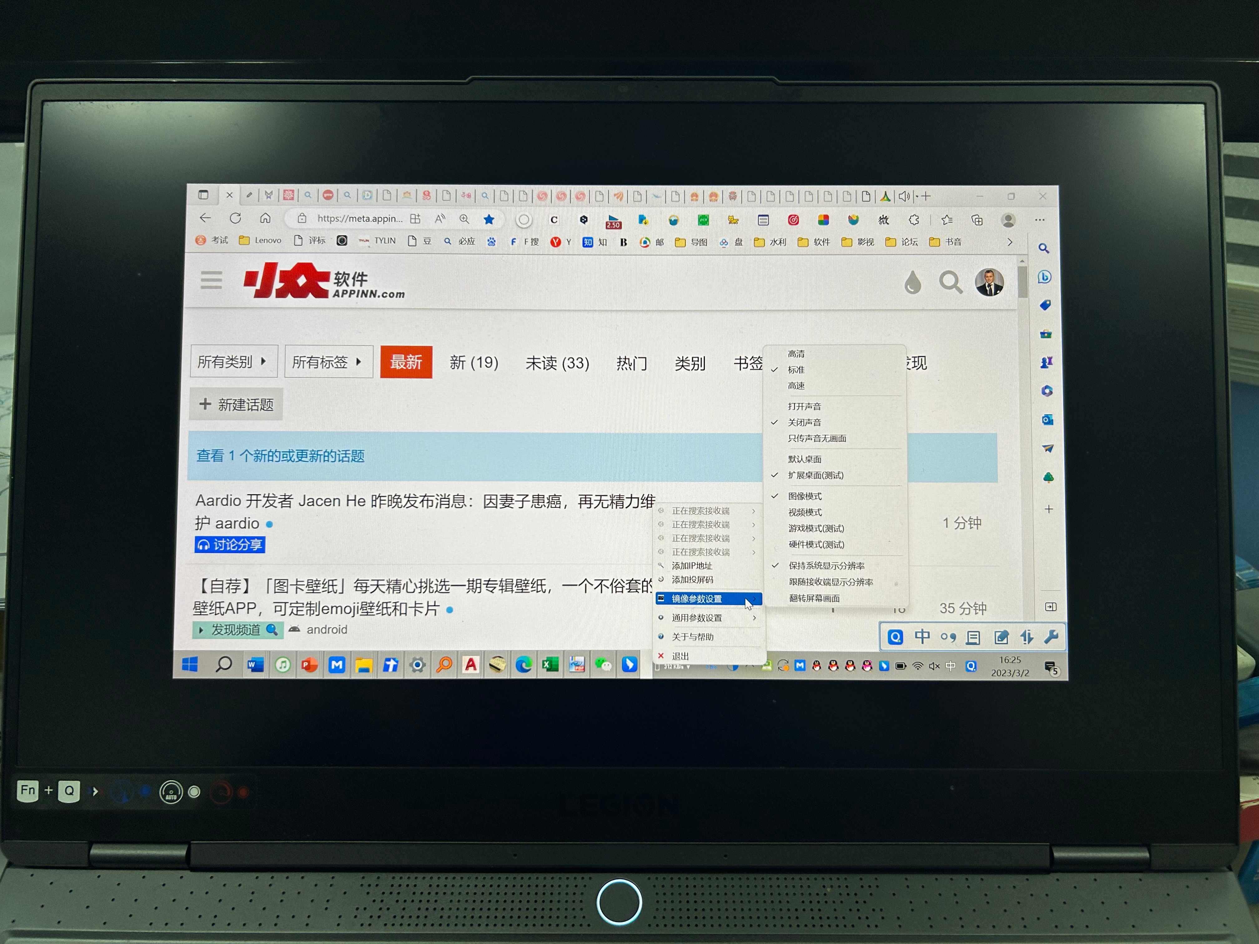 因为单位会议室前段时间换了明基的投影仪,受原来埋线的限制, 必须用无线连接,明基官方是推荐使用软件AirPinPCSender来进行连接,结果用了之后,目前我自己的笔记本的屏幕在外接显示器的时候没问题,但是单独使用的时候就搞得屏幕不能全屏显示了了,就变成了下面照片的样子了,请问有有没大佬碰到过这种问题,是否有解决方案?多谢~!