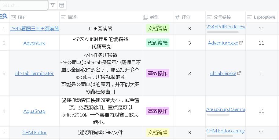 对于我来说,软件启动器快不快无所谓,因为常用的可以做成快捷方式打开。而如果你的软件库里有很多软件,又刚好忘记了软件名字,那是很难找得到的。所以,我需要的是可以添加描述和筛选的功能的启动器。而Obsidian恰好有插件可以满足,且Obsdian可以用同步软件同步,达到全平台通用。(目前手机上的DB folder几乎不可读,且要启动APP的话应该要用浏览器做一个跳板)
