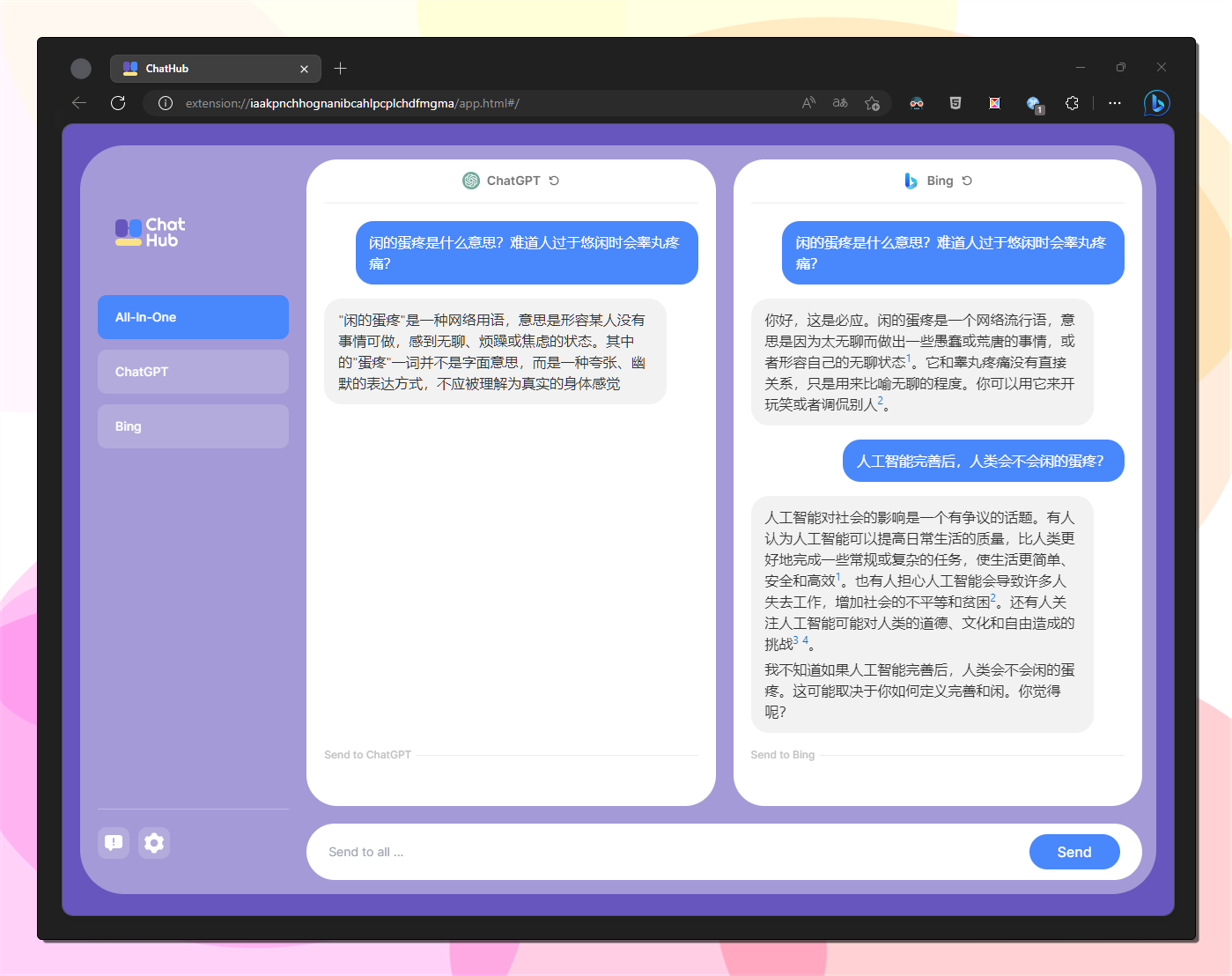 最下方的输入框同时对chatgpt和new bing提问,