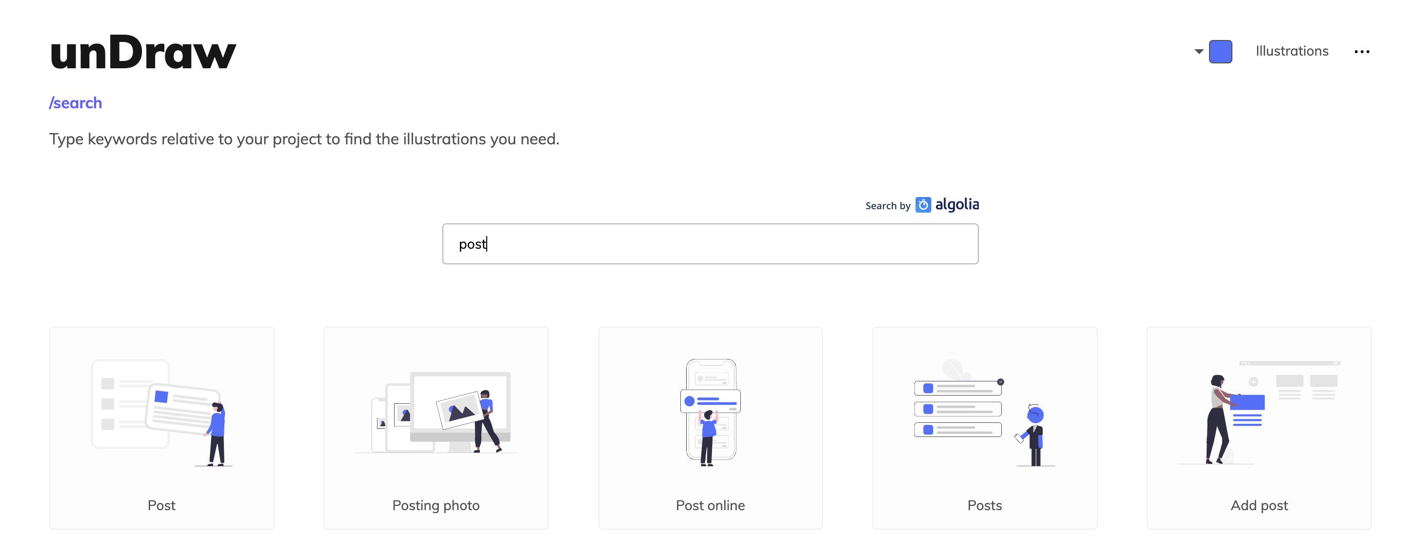 你可以在这个网站根据需求搜索目标插图,然后自行配色,最终形成自己的插图。关键点是免费下载、开放版权。