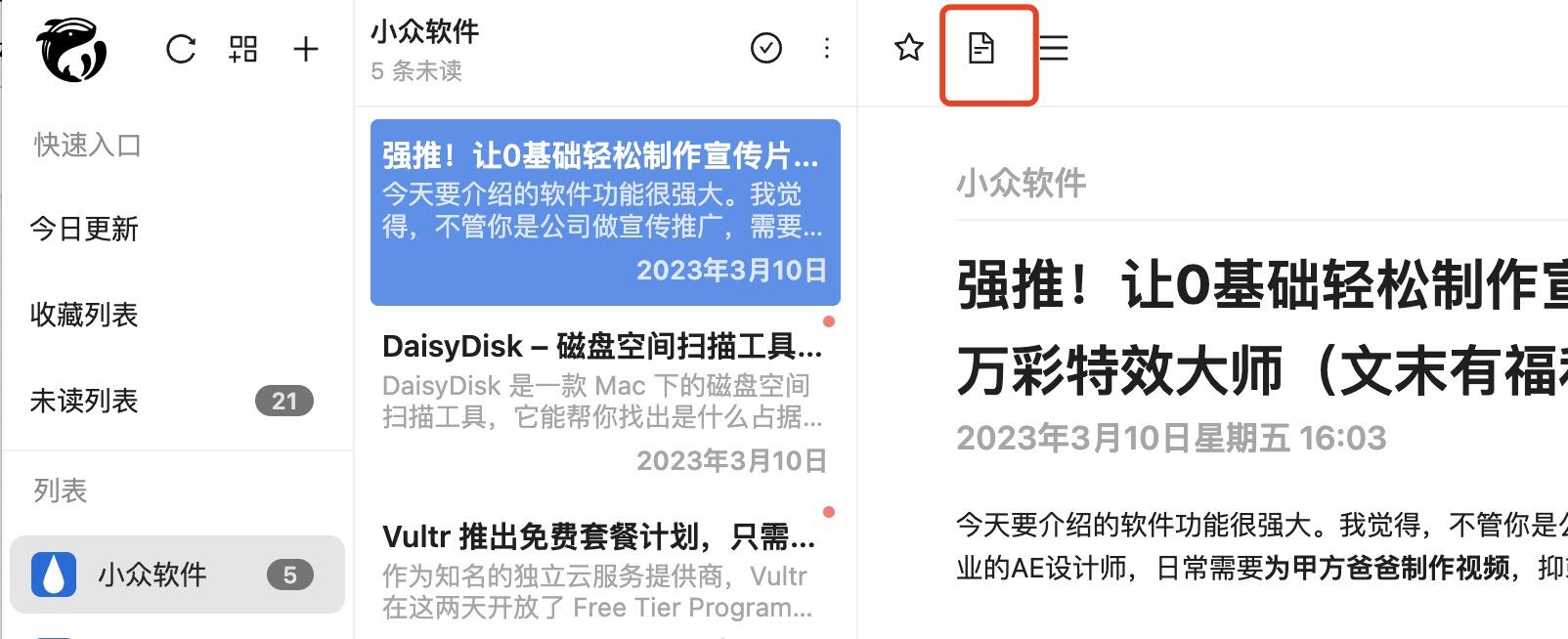 关于第二个问题,确实有部分网站的 rss 是不具备直接浏览的能力的。所以这个插件有一个功能是可以尝试用阅读模式去拉取原页面,然后进行调整输出。