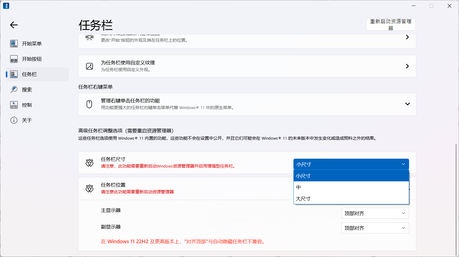 Win11 22621.1413如何缩小任务栏?