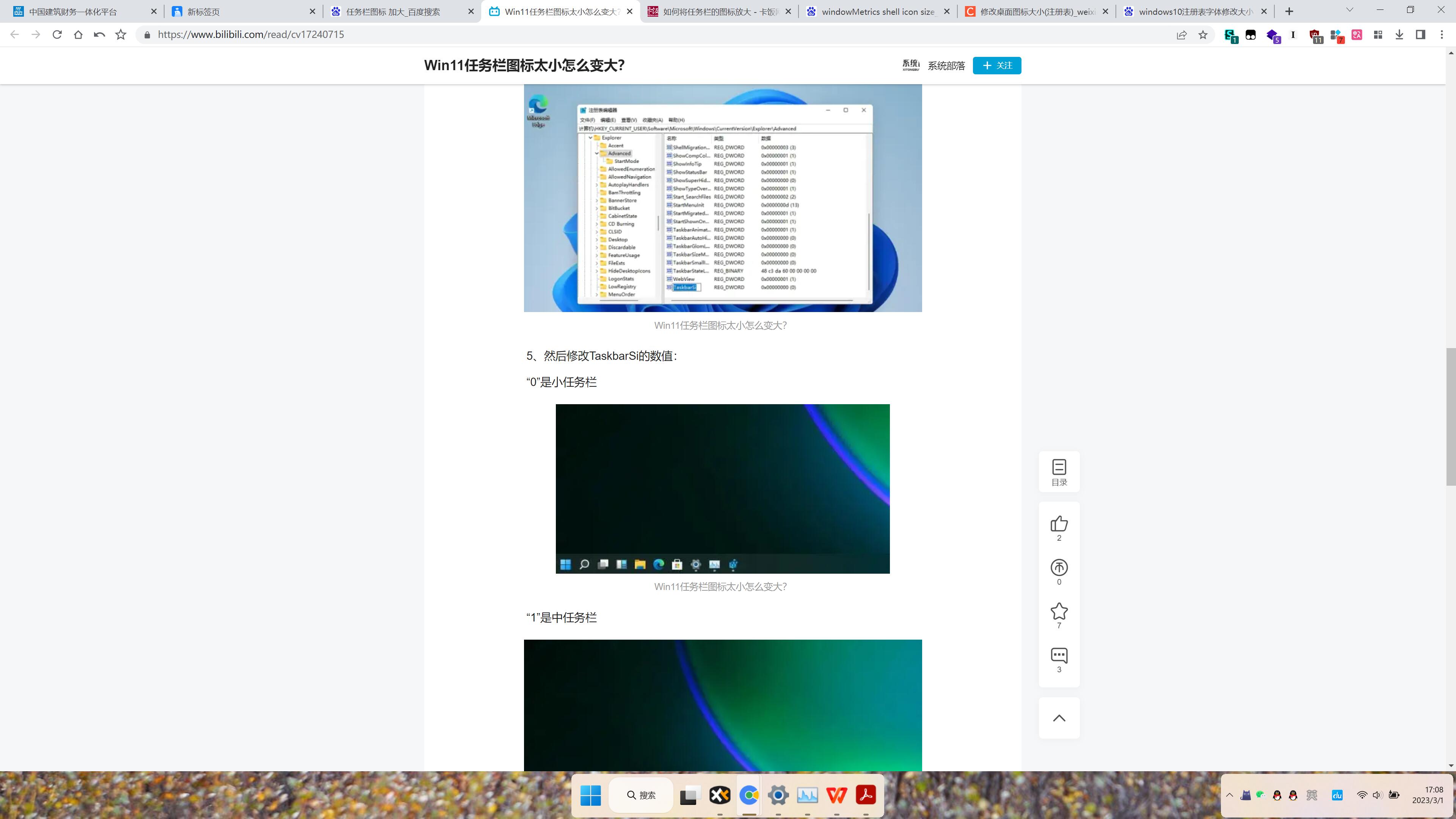 今天系统更新了22621.1413,之前用 修改注册表的方法 改小的任务栏又恢复了正常尺寸。有什么新的办法可以缩小任务栏吗?