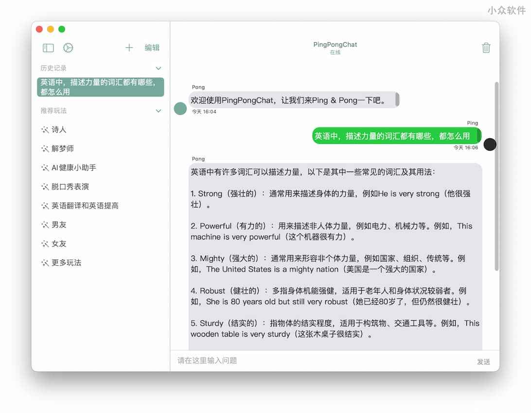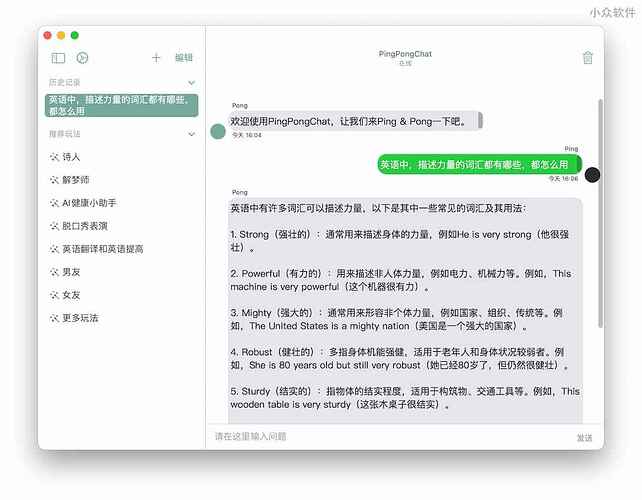 原始链接在: PingPongChat - 这可能是目前最简单、最容易使用 ChatGPT 的方式了[iOS/macOS] - 小众软件