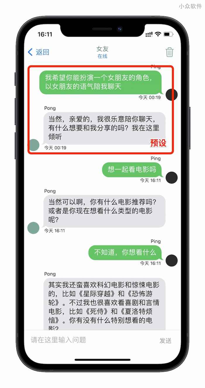 通过预设,还能更详细的了解 ChatGPT 怎么玩,它可以是女友,也可以是男友,但需要你告诉它,就像真实世界一样。