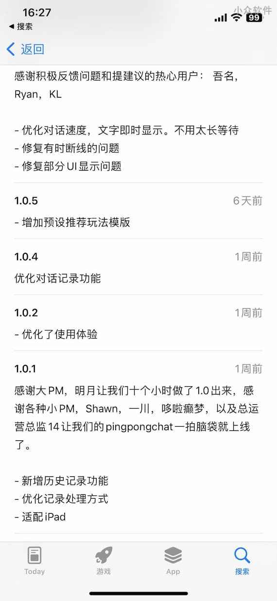 PingPongChat 是一款已经在国区上架,可直接使用的 ChatGPT 客户端。支持 iPhone、iPad、Mac,只需要从 App Store 下载安装即可使用。不需要注册账号,不需要折腾 API,什么都不需要,即刻拿起你的 iPhone,打开你的 Mac 电脑,就能用。@Appinn