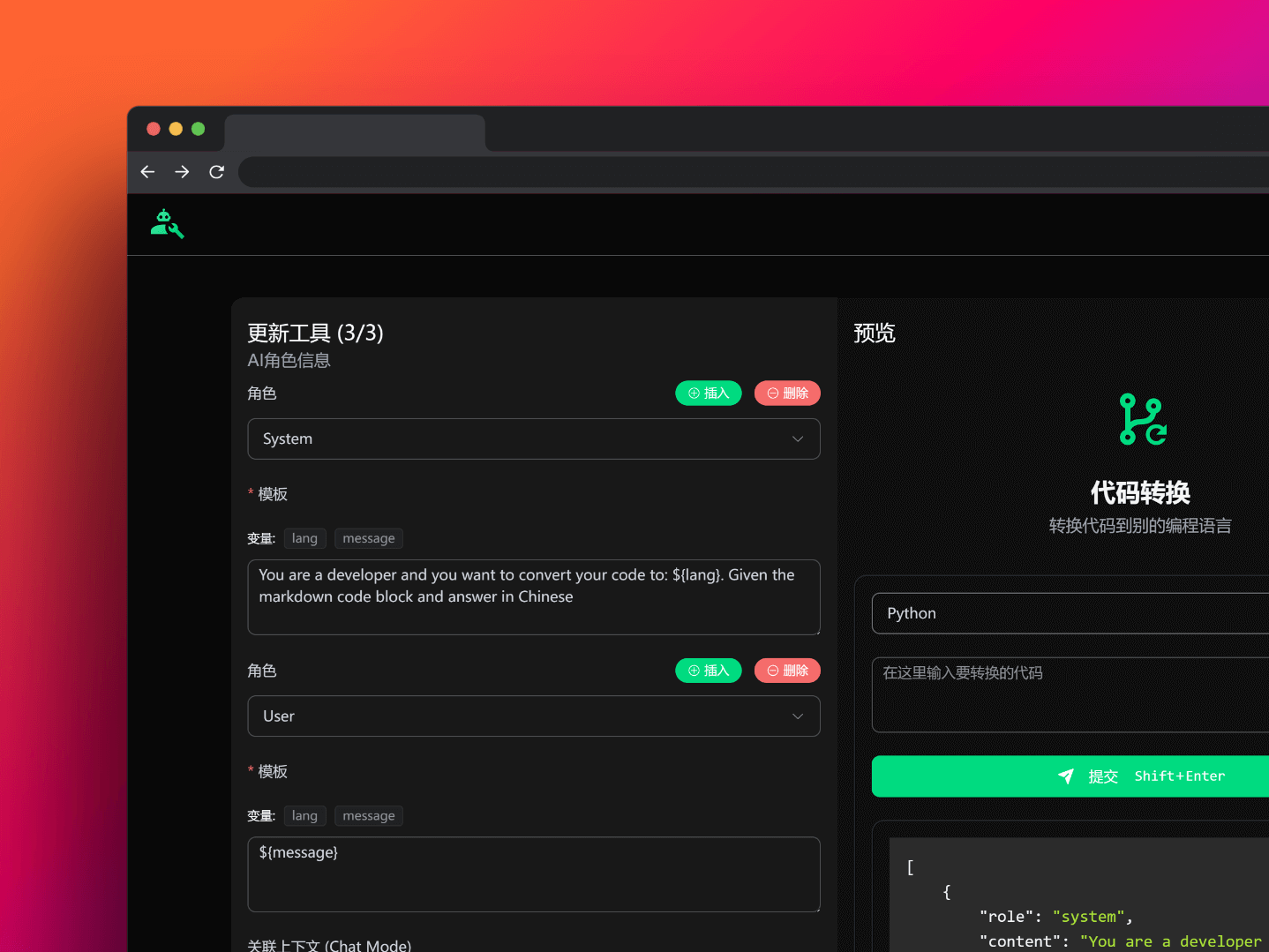 大部分 ChatGPT 相关的工具本质上就是调整 prompt,AI Anything 则让人人都可以快速创建 ChatGPT 小工具。基于MIT协议开源!