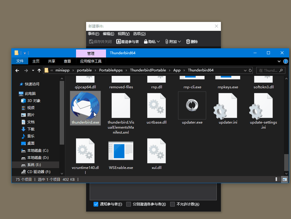 如果您想在 Thunderbird 中为日历事件添加附件,并让附件跟随 Thunderbird 的配置文件夹,您可以使用相对路径来实现。假设您的 Thunderbird 配置文件在 D:\tbcal 目录下,您可以按照以下步骤进行操作: