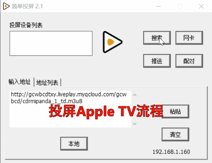 简单投屏v2.1版支持将网络视频源和Nas本地视频对Apple TV投屏