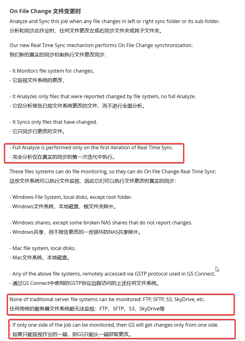 据手册说明,同步时“ 它监视文件系统的更改- 完全分析仅在真实的同步的第一次迭代中执行,如果是onedrive与本地文件同步,将只能监视本地文件夹的更改