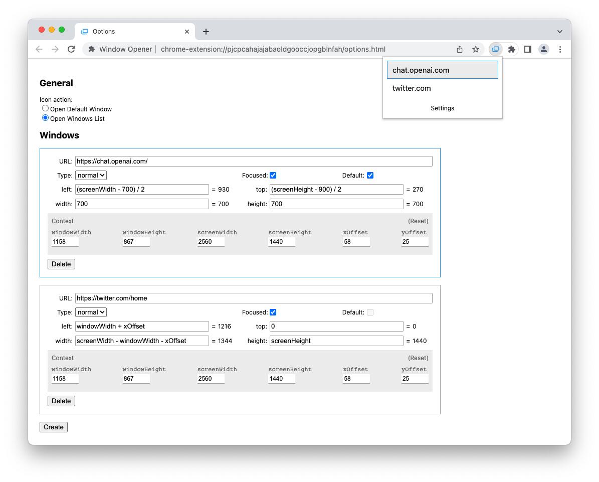 中文说明(博客): Window Opener for Chrome | Reorx’s Forge