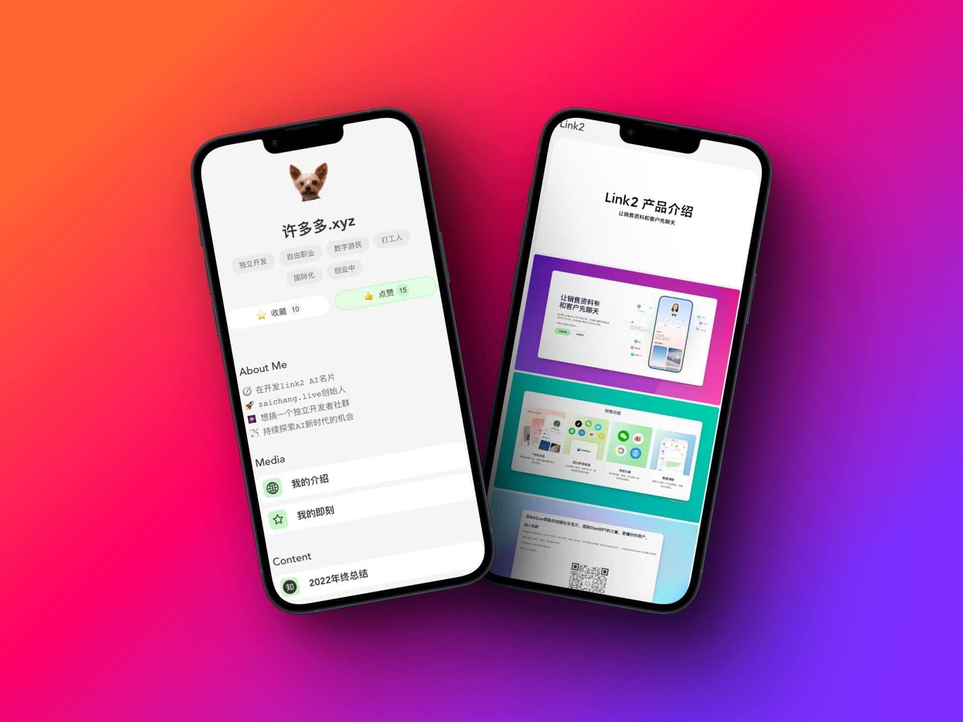 使用「Link2」可以创建一个自己的数字名片页面,并将它分享到社交应用。