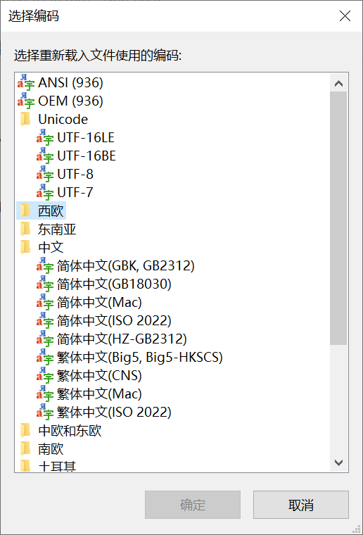 我尝试用notepad2的指定编码载入文件模式,试了UTF7、UTF8和下面所有的中文编码,都不能正常显示中文