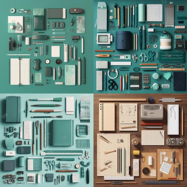 我让它摆一堆文具出来看看。