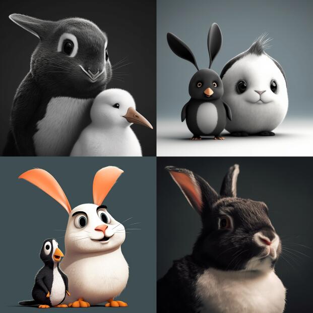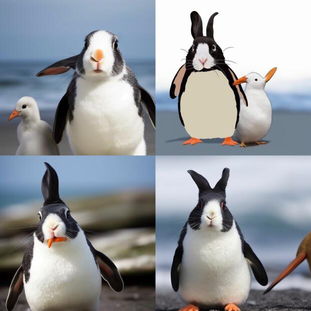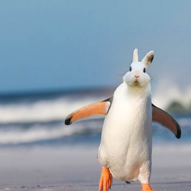 类似的,两个动物的融合也很难,比如兔子脑袋的企鹅