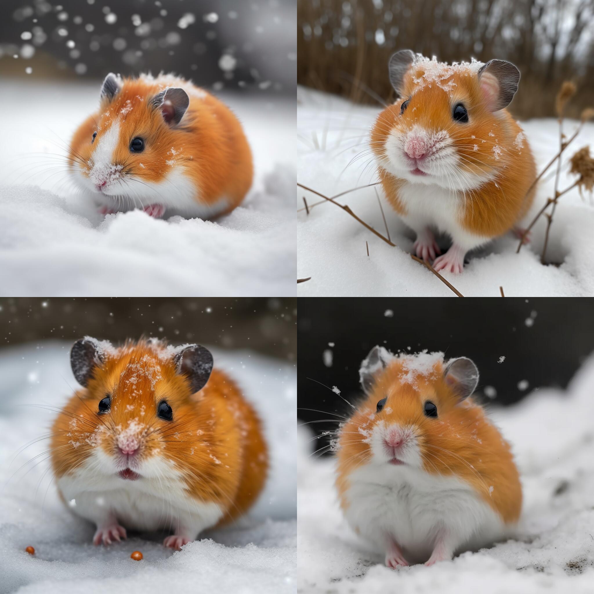 它对于动物的了解主要限于正面,或者说我们直观印象的一面,比如我想绘制一个仓鼠一头扎进雪地里,只露着后腿和屁股在外面的图像,大家一听就知道,就是那个狐狸扎进雪地的翻版,很俏皮可爱。
