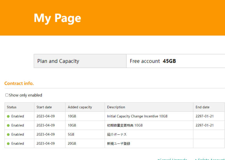 2、注册帐号后点击右上角的 My Page 进入个人中心,下拉找到“Get more capacity ”–>”Enter friends Introduce code”,输入推荐码:【GNNZR】即可领取额外的5GB永久容量,如果你不输入推荐码没有。这样即可实现25Gb永久免费容量,用来云同步完全够用。