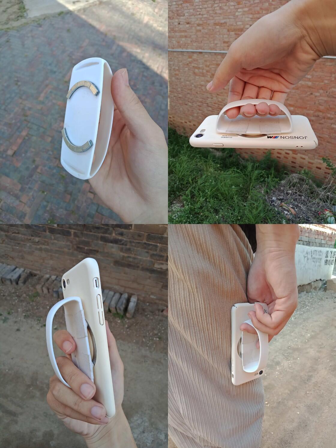 也有软材质的,用起来还行,确实有掰到手指的风险。我挺喜欢背后一根带子的,但是相对不方便旋转手机的方向。