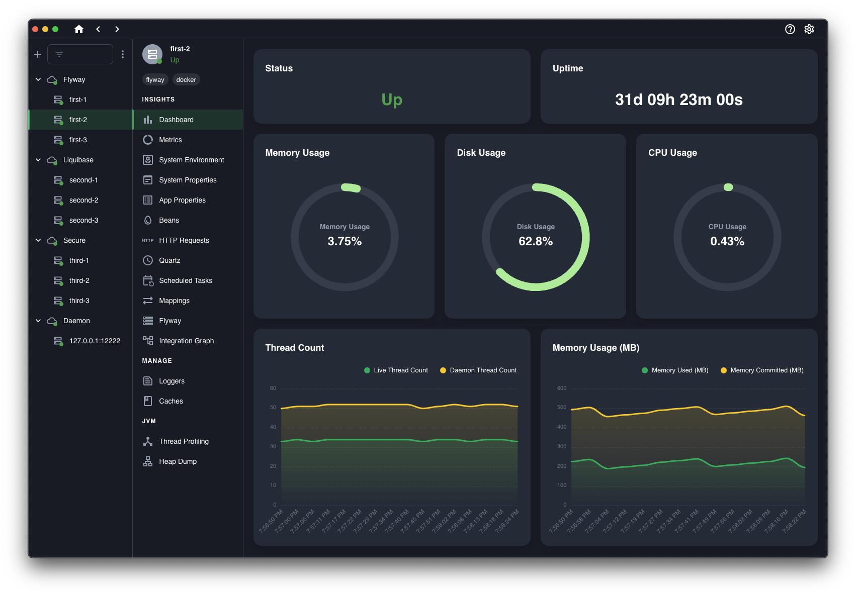 Boost 通过提供对 CPU 和内存使用情况等关键指标的实时监控,使您能够深入了解微服务的性能和健康状况。