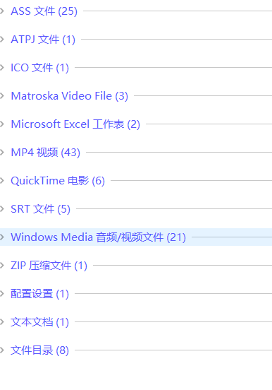 点击自己感兴趣的类型,左下角,会显示这个类型的文件有多少个。