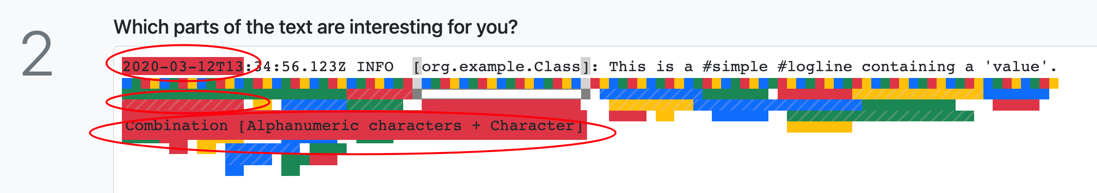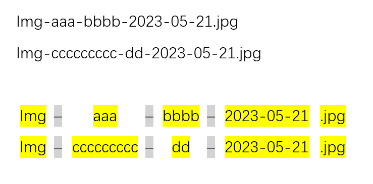 - 通过区块背景色区分类型(文本串、数字串、分隔符等)