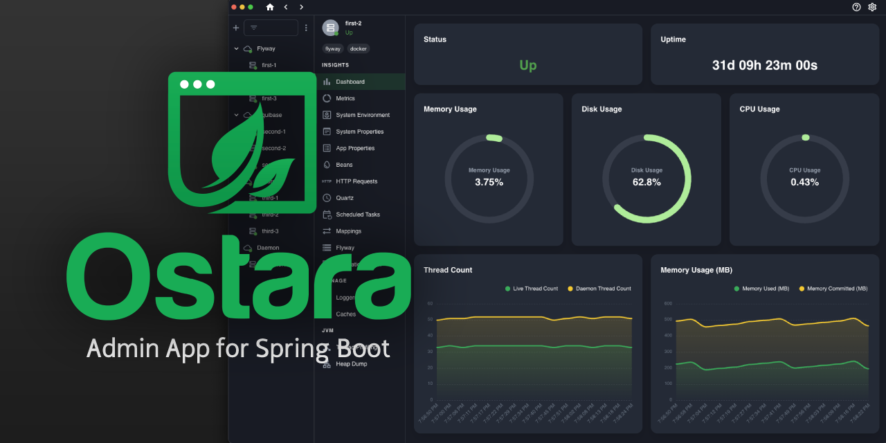 Ostara 是一个现代桌面应用程序,用于使用执行器 API 管理和监视 Spring Boot 应用程序,类似于 Spring Boot Admin。 我们的目标是使流程更加人性化和直接。
