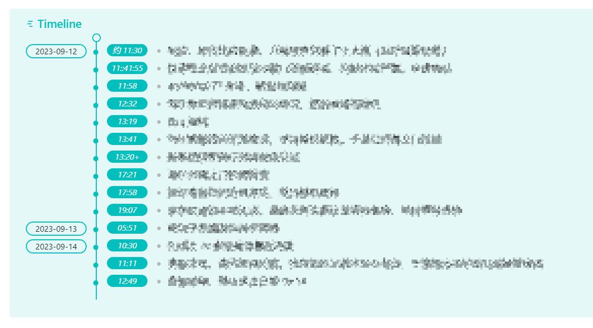 最近遇到点事情,啊,就是买东西有问题找售后,然后接电话,反复沟通确认,老鼠这小脑壳觉得信息量有点大,然后怕记不清楚回头把自己绕进去,就记录一下,然后觉得记录下来的效果不好看(颜狗)就写了个时间轴样式: