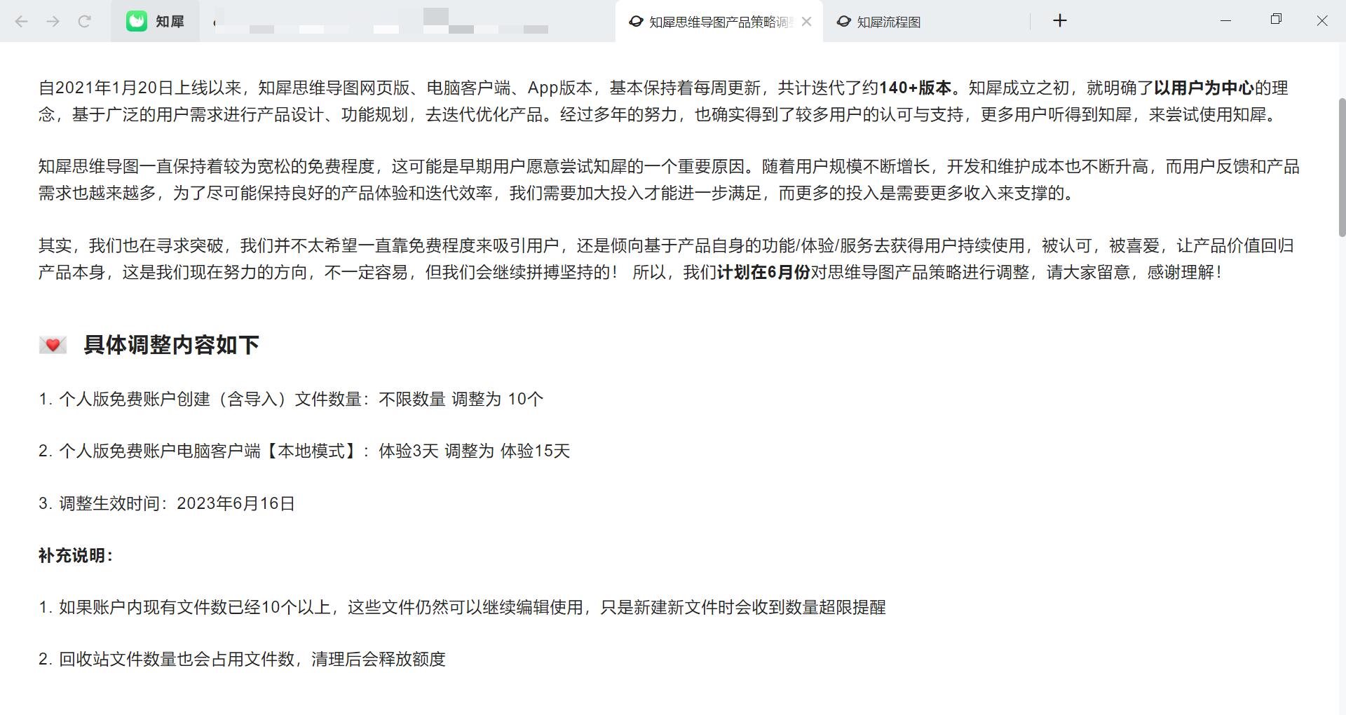 目前看样子免费版基本上是用不了了(10个思维导图不太够用吧),其实如果要坚持免费的原则的话,做本地版是好很多,在线版的服务器、带宽的开支太多了,不可能靠商业化维持下去,而且他跟竞品 Mindmaster 和 XMind 只能说没有找到个差异化的竞争点吧,加上好像思维导图商业化的方式不多,来来去去就是插入的图片大小、导出水印/格式、思维导图节点/类型,导致其实思维导图基本上都需要付费