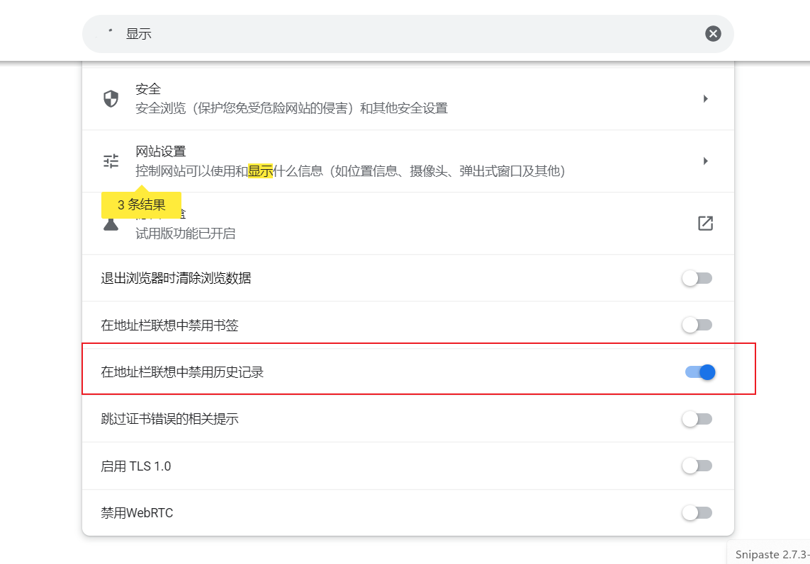 这个地址栏的搜索记录有时挺烦的,默认的优先级就高,搜索关键字多了一堆记录挤在前排。尝试过禁用所有与 Omnibox 相关的 flag 都无效,也搜过没找到除安装扩展的以外的其他方法