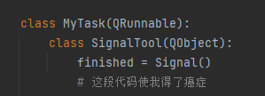 QT线程池中使用的是QRunnable,这个子线程没有继承QObject,导致无法使用QT的信号和槽,而我需要做一个进度条监控线程池总进度,于是我不得不在其中套了一个类种类,继承QObject,唯一的作用就是发送信号,告诉槽函数这里完成了一个进度 :sweat:
