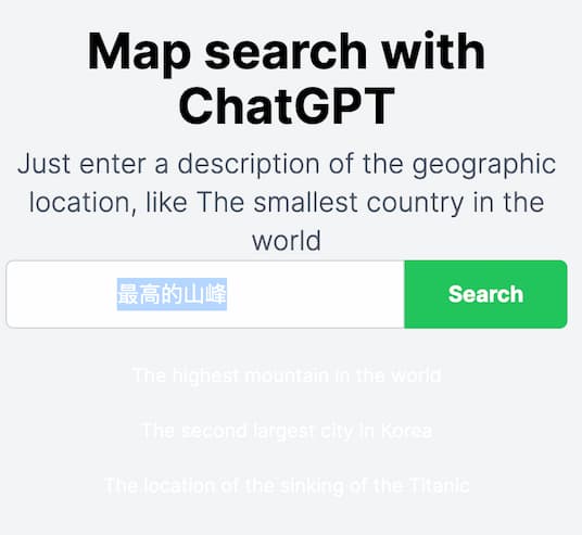 ChatMap-AI是一个基于chatgpt的地图查找工具。您可以提交一些诸如“中国的首都”、“时世界最高的山”、“中国人口最多的5个省份”、“美国大麻合法化的州”。 这些问题都能利用人工智能技术帮你快速定位地图的位置。 对于地图爱好者和历史、地理研究者或者新闻学者可以极大提高工作效率