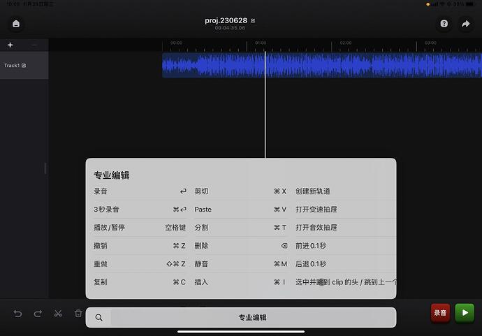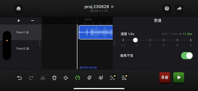 主要功能就是录音和音频剪辑,录音录完以后可以进行快速的分割删除,而专业剪辑模式则可以进行多轨道剪辑,这里就和传统的多轨道音频编辑软件界面很像了,但简单很多,该有的基础功能都有。