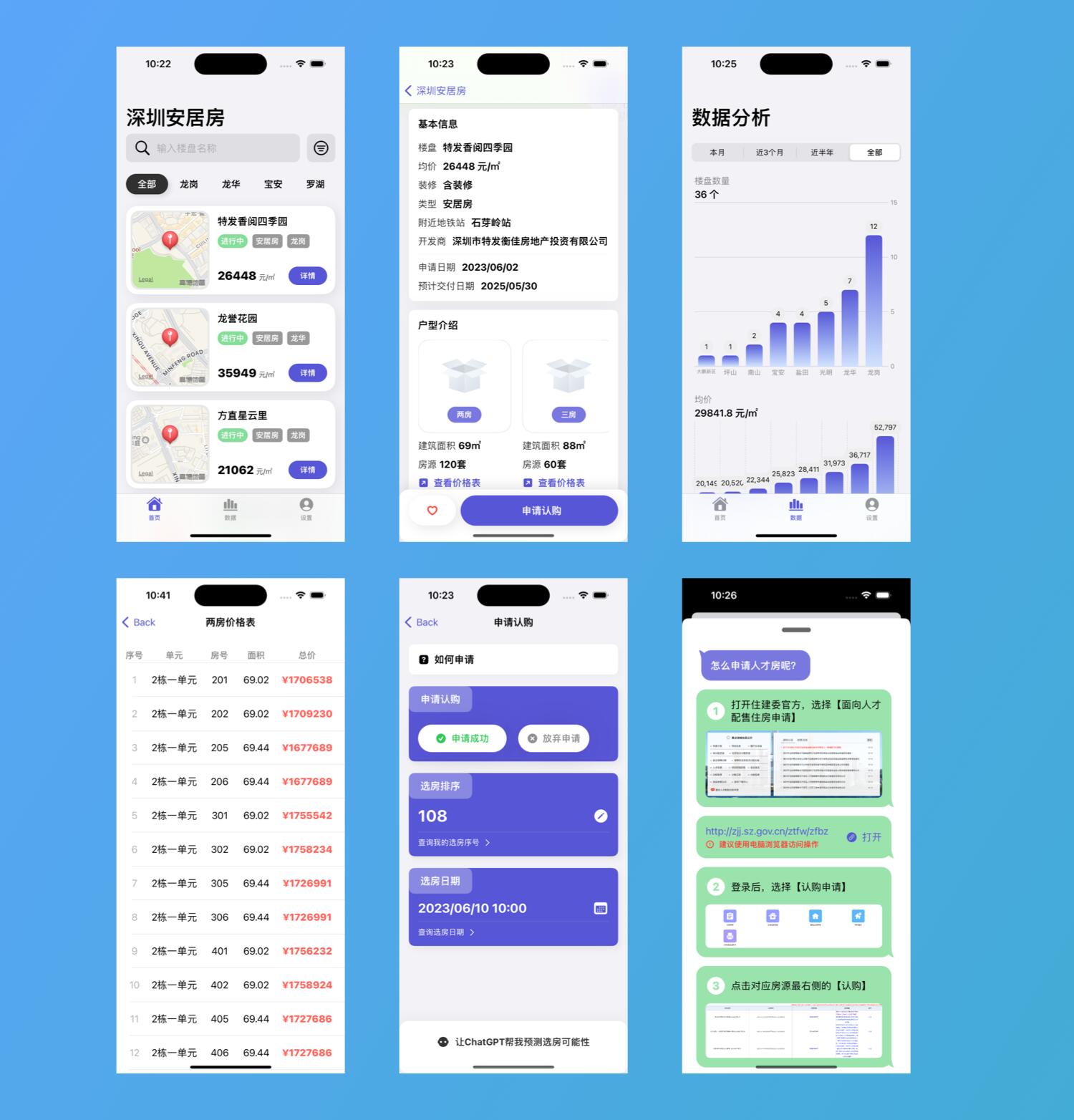 深圳的商品房房价懂的都懂,所以自己这两年一直在关注和申请深圳安居房和人才房,但是住建委官方发布的信息很零散,需要自己记录,并且不方便收集查看,所以开发了这个APP,有同样的需求的伙伴可以下载体验。