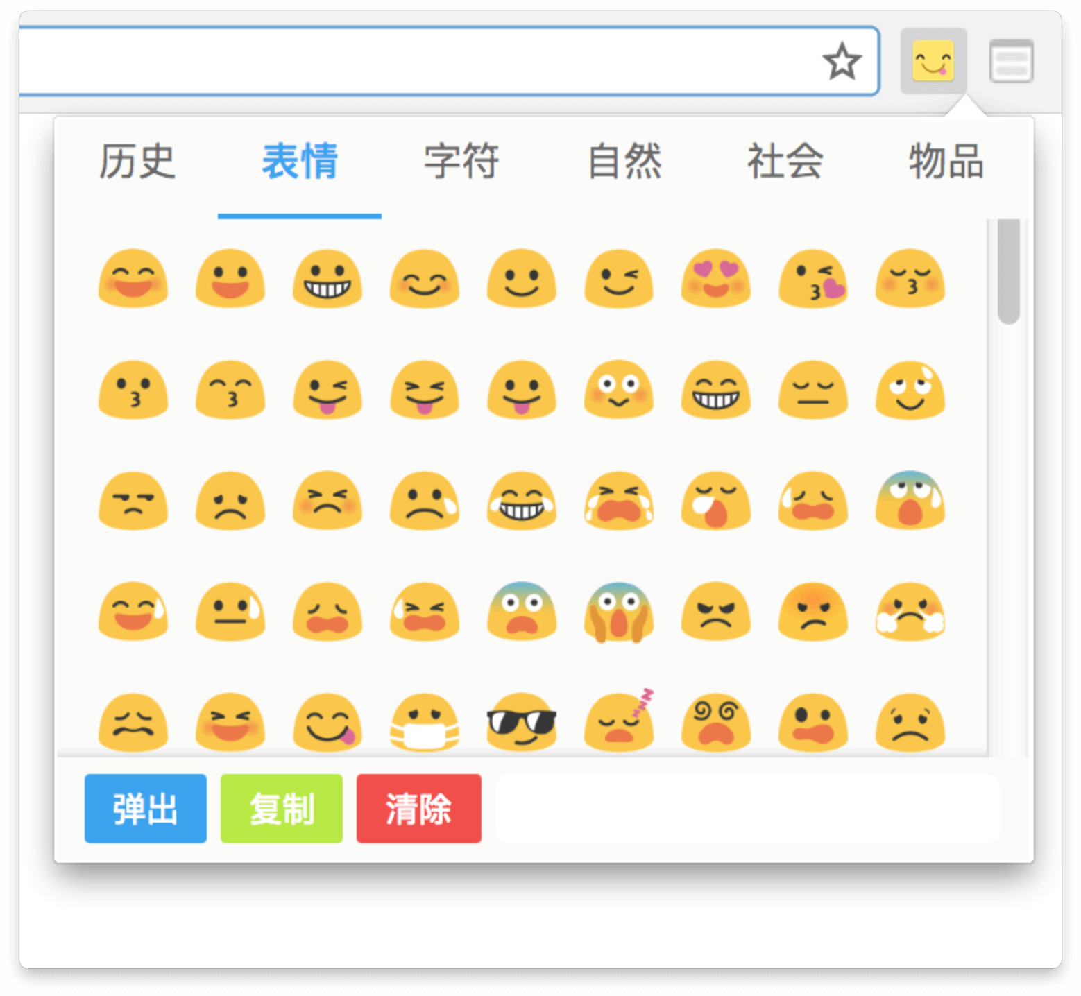 试用了 Chrome webstore 里面的几个下载量很大的 Emoji 扩展,例如:
