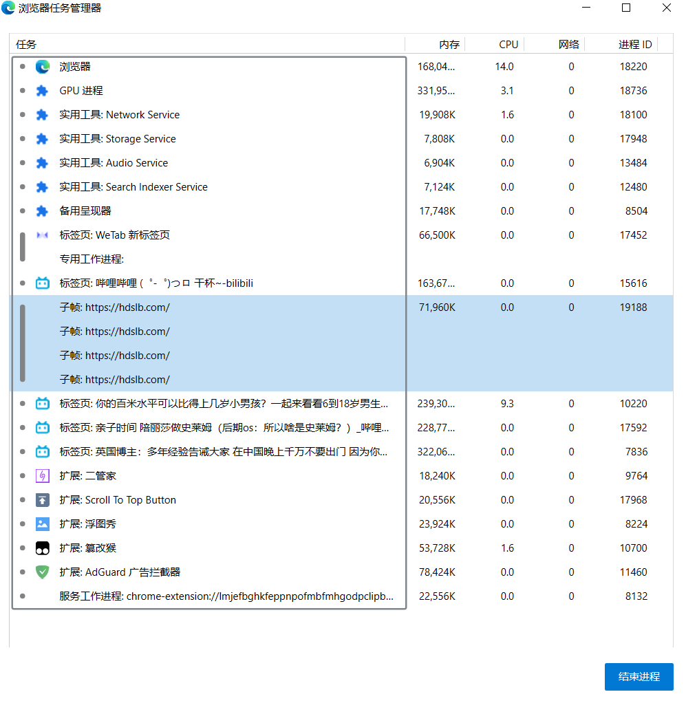 所以,還是先去看看瀏覽器自帶的工作管理員吧,它能解答你的疑惑