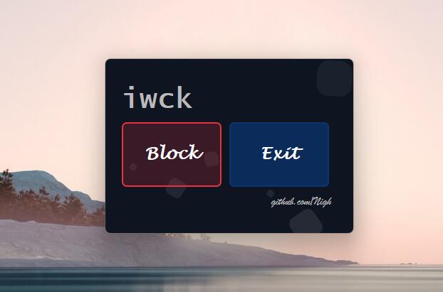 iwck 是 i wanna clean keyboard 的缩写。是一个用于在临时清理键盘、在键盘上吃泡面或者在键盘上用小本本做笔记时屏蔽键盘输入的软件。现在也添加了对鼠标的支持。