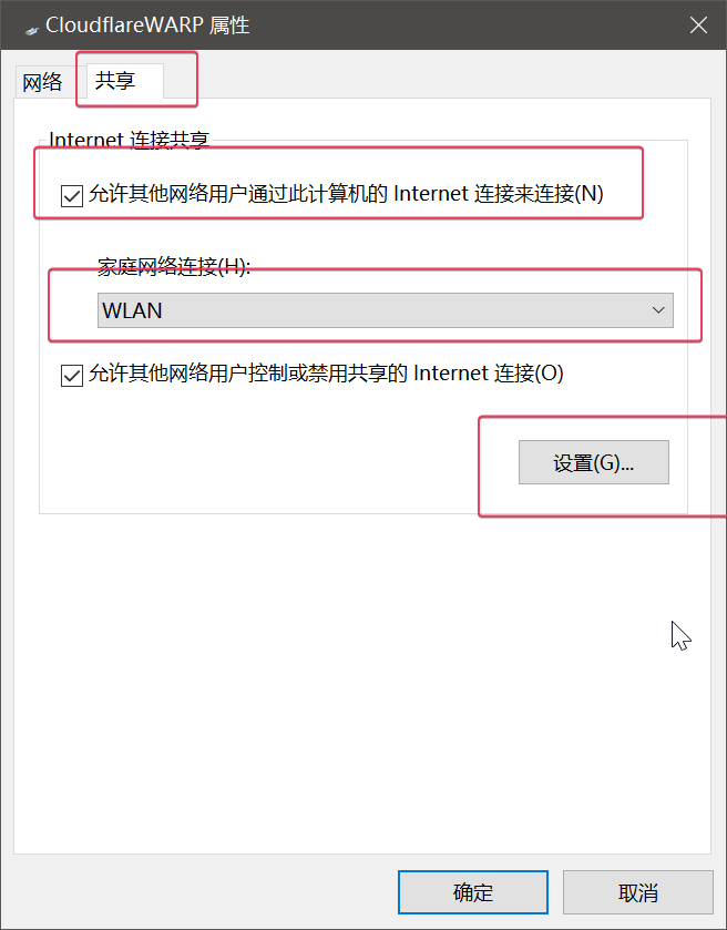 设置了Internet连接共享,家庭网络连接选了无线网卡,