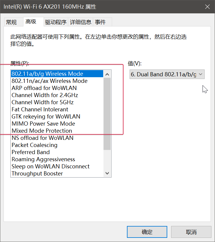补充,我用其他正常电脑的无线网卡->属性->配置->高级对比了下