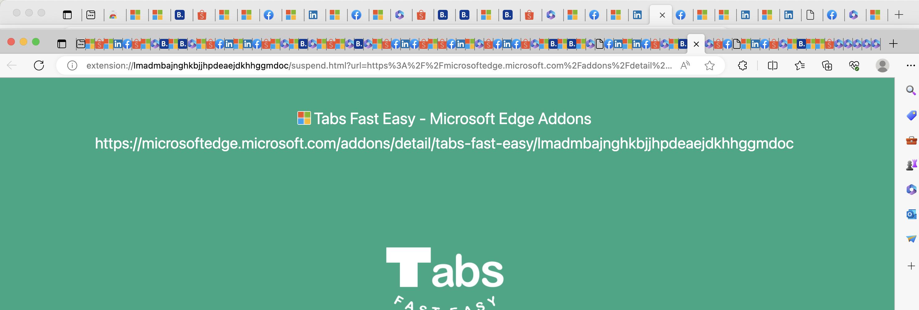 感觉体验上比Edge自带的各有优劣,优点是不会有那种切换过去后关掉时狠狠卡住的情况,缺点是需要重新加载页面。如果有些页面有些动态内容、瀑布流的话应该不太方便。另外希望卸载扩展时把标签页还原,卸载后才发现所有标签被替换成了extension://xxx